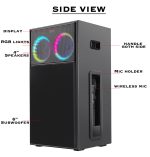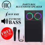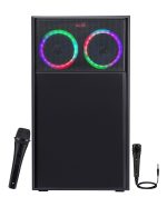 this product comes with 2 mic with excellent bass and sound. i recommend this UIC Speaker.